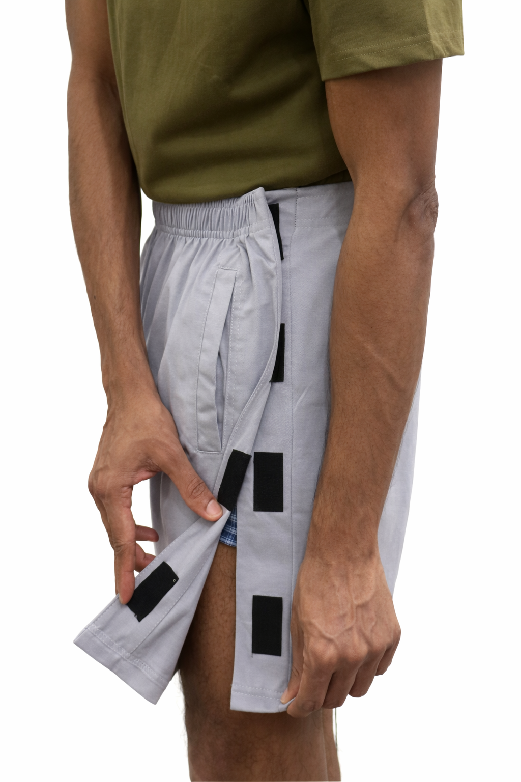 High quality material. The fit is perfect. One suggestion: Please make the velcro trousers with catheter pockets as well.